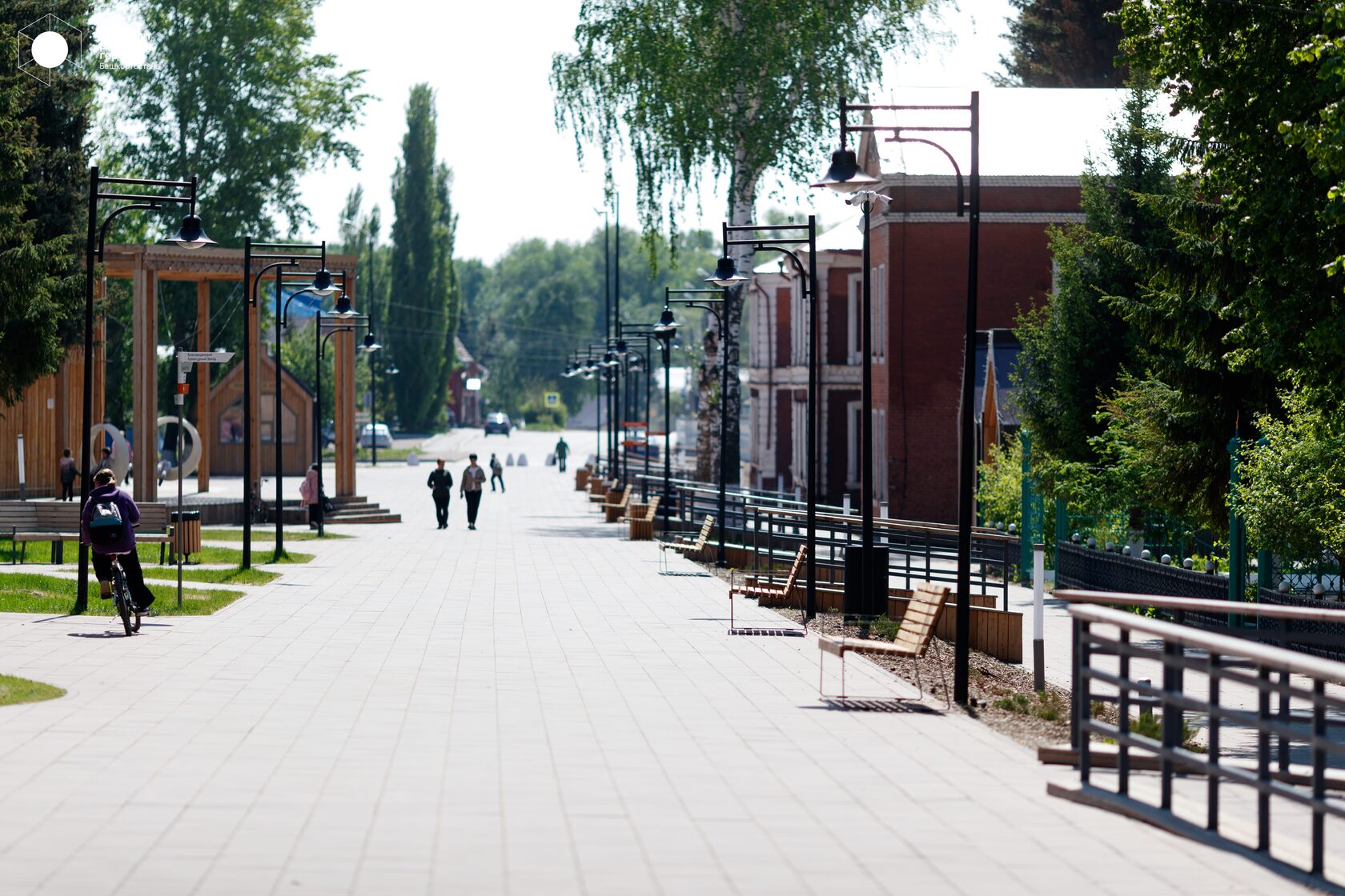 Основной стержень — пешеходная улица, на которой располагаются павильоны для локальных мастеров, небольшая сцена с качелями для школы, которая находится рядом. Рядом появилась событийная площадка с лестницей-амфитеатром.