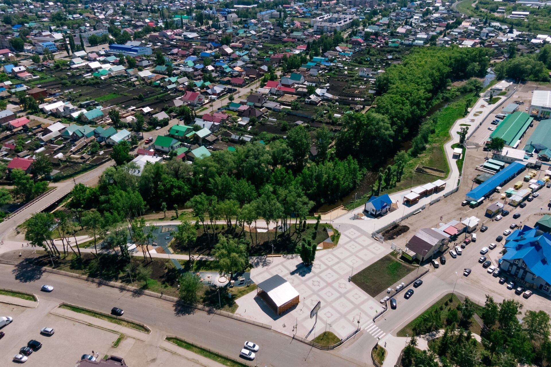 Завершающая часть набережной, интегрированная с рынком, — проект «Цветущий берег Мелеуза» — это непрерывный пешеходный маршрут от административного центра до главного въезда в город.