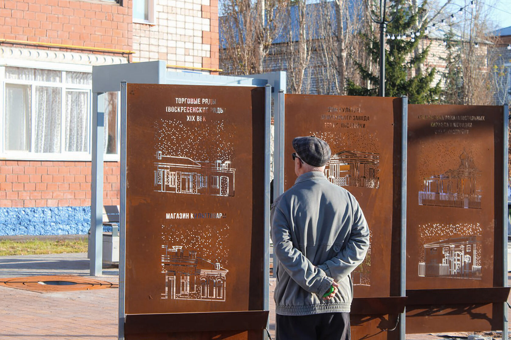 Улица Советская не только возвращает исторические функции, но и наполняется новыми символами, связанными с городом через информационные стенды, уникальные малые архитектурные формы с эмблемой города – голубем; некоторые элементы благоустройства (светильники, приствольные решетки, стенды) выполнены из кортеновской стали – отсылка к металлургическому заводу.