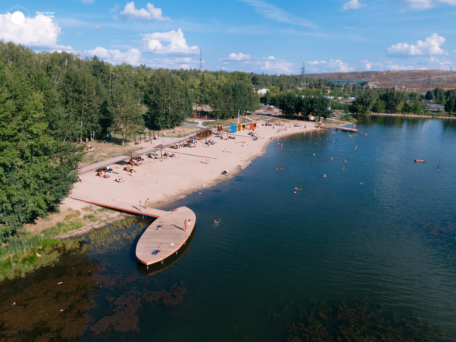 Проект продолжает работу над развитием городского центра, предлагая Агидели современное общественное пространство и первый благоустроенный выход к воде. На набережной часто проводятся городские праздники, поэтому здесь появилась событийная площадь со сценой и зонами отдыха. На территории пляжа: шезлонги, кабинки для переодевания, спасательная вышка.